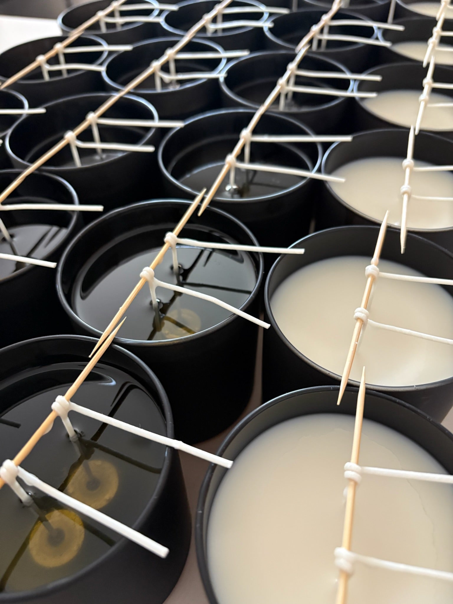 We keep things simple and flexible. Offered in our signature white or matte black glass vessels with a minimum of 24 candles and lead times ranging from 2–4 weeks, depending on order size and customization.